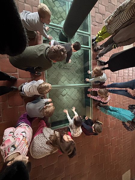 Weiter ging es auf den Dachboden, wo die Gruppe sogar das Rathausgespenst entdeckte. Auch das Anschauen und Streicheln der beiden Schlangen durfte nicht fehlen. Zum Abschluss besuchten die Grashüpfer den Festsaal und erhielten kleine Geschenke – ein schöner Abschluss eines erlebnisreichen Ausflugs.