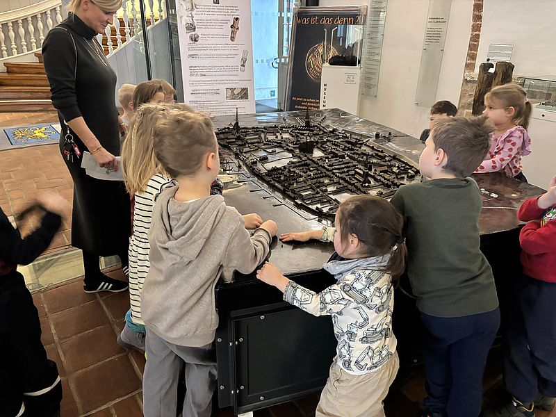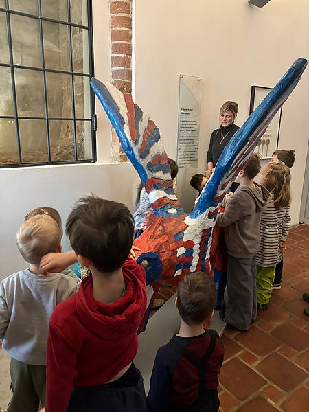 Passend zu unserem Projektthema besuchten die Grashüpfer das Rostocker Rathaus. Dort erhielten die Kinder eine spannende Führung und erfuhren viel über die Geschichte des Gebäudes. Besonders interessiert schauten sie sich das Modell der Stadt Rostock sowie den Rostocker Greif an.