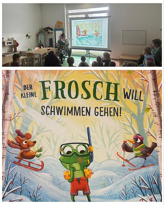Mit großen Augen und gespitzten Ohren verfolgten die Kinder die Geschichte des kleinen Frosches, der nach dem Winterschlaf am liebsten sofort ins Wasser springen möchte und dabei entdeckt, was man im Winter alles erleben kann. Die liebevollen Illustrationen und die lebendige Vorleseweise machten das Zuhören zu einem echten Erlebnis.