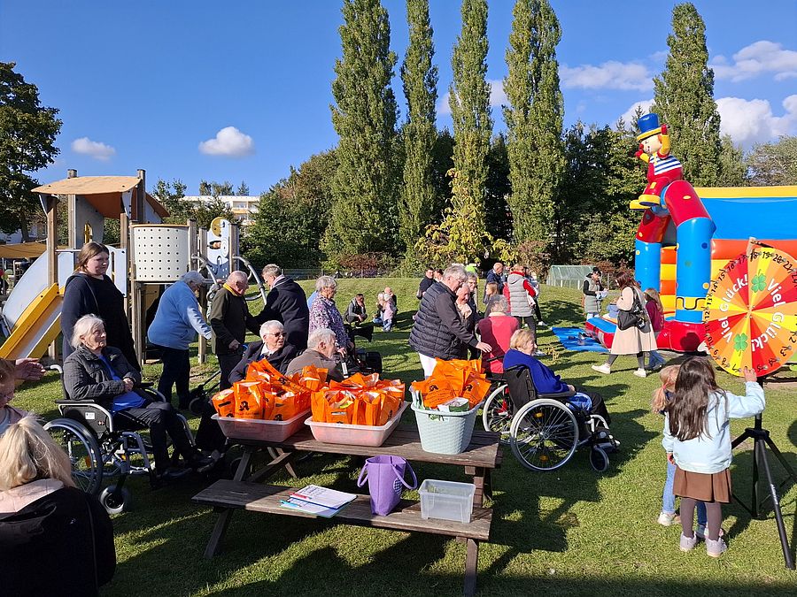Dieses Ereignis musste natürlich gebührend gefeiert werden. Bei schönstem Sonnenschein und guter Musik konnten wir die Feier eröffnen. Der Andrang auf den Hüpfburgen war natürlich groß. Auch beim Kinderschminken, Tattoostand und den bunten Haarsträhnen, arbeiteten die Erzieher fleißig daran die Kinderwünsche zu erfüllen. Die FFW aus Preetz war mit einem Einsatzfahrzeug vor Ort und die Polizei Stralsund mit einem Streifenwagen, hier konnten die Kinder die Fahrzeuge von innen und außen inspizieren. Bei Kaffee und Kuchen konnten spannende Gespräche geführt werden und Kinder und Eltern schwelgten in Erinnerungen. Zur späteren Stunde wurde die Gulaschkanone angeheizt und es gab Nudeln mit Tomatensauce. Wer zwischendurch noch etwas Süßes wollte, konnte sich am Zuckerwattestand vergnügen. Das Highlight des Tages, war aber unser Glücksrad. Hier gab es keine Verlierer und jeder Dreh war ein Gewinn.