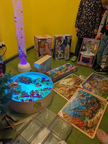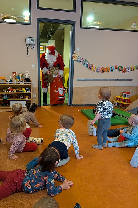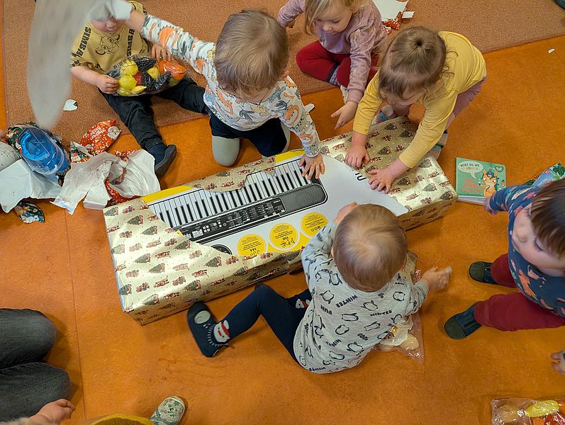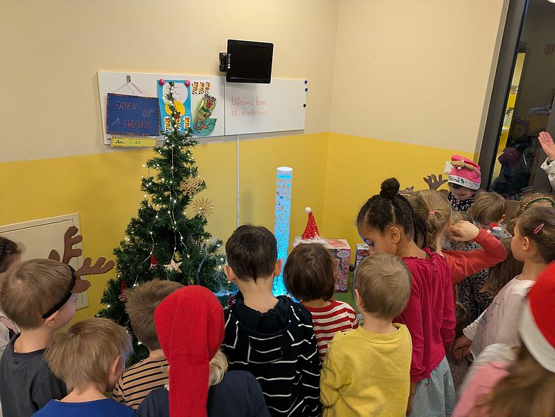 Ein besonderer Höhepunkt folgte anschließend: Der Weihnachtsmann besuchte die Kinder und brachte Geschenke mit. Mit großer Freude wurden diese ausgepackt und neugierig bestaunt. Danach spielten die Kinder begeistert mit den neuen Spielsachen und ließen den schönen Vormittag fröhlich ausklingen.