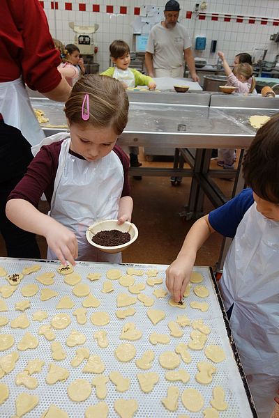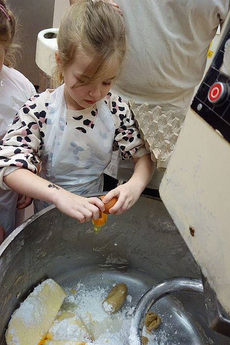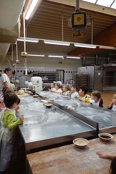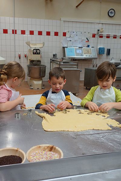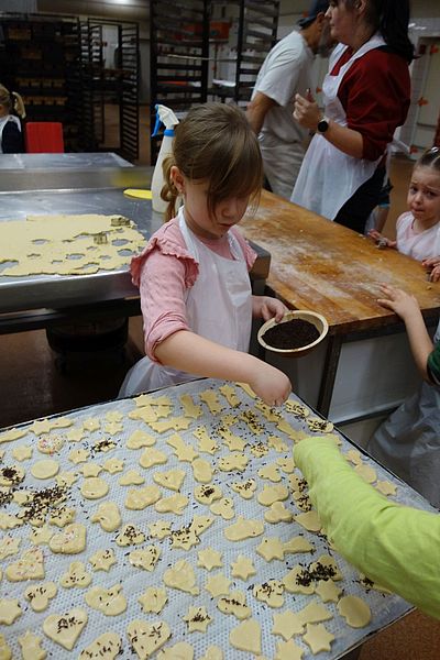 Einen ganz besonderen Ausflug konnten die ABC Kinder der ILL Kita Sundwelle und ILL Kita Am Grünhain im Dezember erleben. Die Bäckerei Krämer hatte uns in ihre Backstube eingeladen. Nach einer aufregenden Busfahrt, hieß es erstmal für alle Kinder: „Hände waschen“ und dann ging es auch schon los. Eier mussten aufgeschlagen werden, Mehl und Zucker abgewogen werden und kamen alle Zutaten in die große Knetmaschine. Danach wurde der Teig ausgerollt und nun mussten viele Plätzchen ausgestochen werden. Zum Schluss verzierten die Kinder die Plätzchen noch mit Streuseln, bevor alles in den großen Ofen geschoben wurde. Zum Abschied konnten die Kinder als Lohn ihrer anstrengenden Arbeit, jeder eine Kekstüte mit nach Hause nehmen. Wir bedanken uns bei Herrn Krämer für diesen wunderbaren Vormittag und den Einblick in die Backstube.