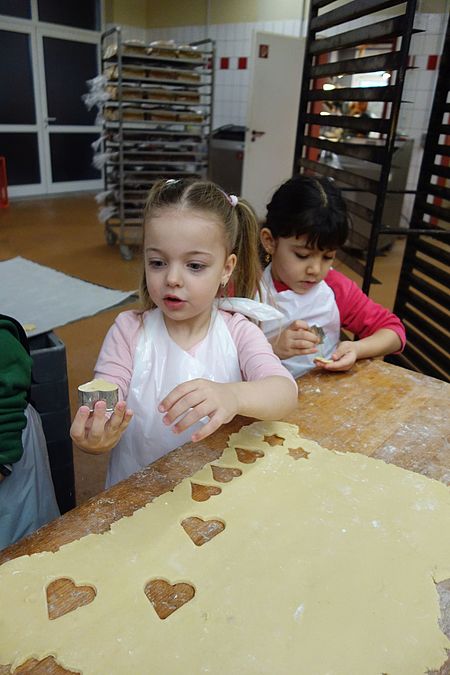 Einen ganz besonderen Ausflug konnten die ABC Kinder der ILL Kita Sundwelle und ILL Kita Am Grünhain im Dezember erleben. Die Bäckerei Krämer hatte uns in ihre Backstube eingeladen. Nach einer aufregenden Busfahrt, hieß es erstmal für alle Kinder: „Hände waschen“ und dann ging es auch schon los. Eier mussten aufgeschlagen werden, Mehl und Zucker abgewogen werden und kamen alle Zutaten in die große Knetmaschine. Danach wurde der Teig ausgerollt und nun mussten viele Plätzchen ausgestochen werden. Zum Schluss verzierten die Kinder die Plätzchen noch mit Streuseln, bevor alles in den großen Ofen geschoben wurde. Zum Abschied konnten die Kinder als Lohn ihrer anstrengenden Arbeit, jeder eine Kekstüte mit nach Hause nehmen. Wir bedanken uns bei Herrn Krämer für diesen wunderbaren Vormittag und den Einblick in die Backstube.