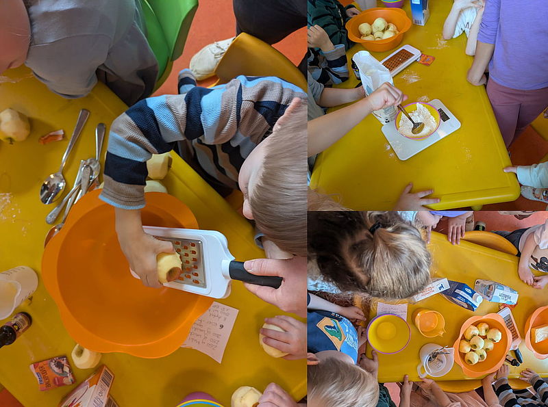 In unserer Kita feierten wir den internationalen Kuchentag – und alle Räume dufteten herrlich nach frisch Gebackenem. Alle Gruppen waren fleißig und zauberten die verschiedensten Leckereien: Lebkuchen, unterschiedliche Arten von Waffeln, Plätzchen, Schokokusskuchen und vieles mehr.