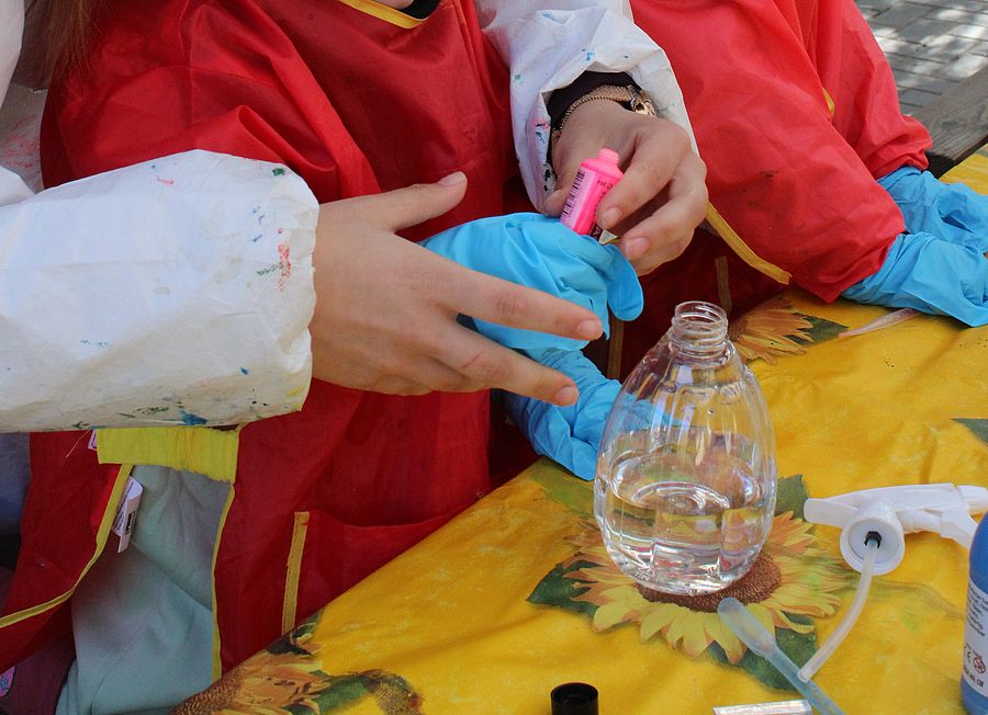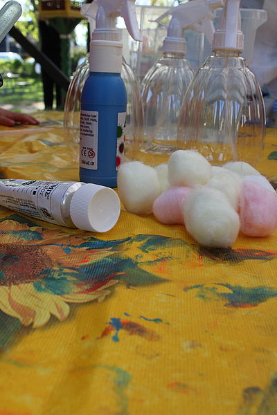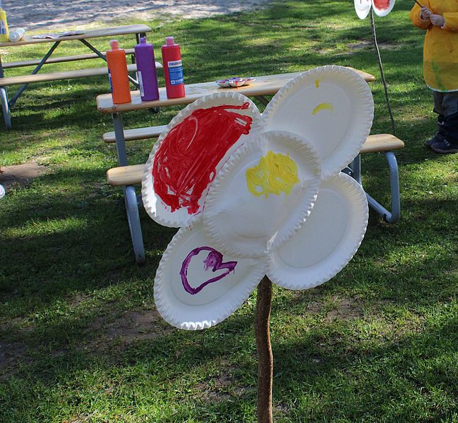Das Wetter lockte heute alle offenen Angebote nach draußen. Die Einen tobten und spielten im Wald und die Anderen ließen sich von der Natur inspirieren. In verschiedenen Gruppen konnten die kleinen Künstler zum Beispiel Riesenblumen auf dem Spielplatz gestalten. Mit Farbe, Pinseln, Fingern, Stöckchen und was zur Hand war. Die "kleinsten" Künstler durften Farben mischen, verteilen, ins Wasser spritzen und dann eine Leinwand betupfen, bemalen, besprühen und alles was sonst noch ausprobiert werden konnte. Ein kunterbunt kreativer Vormittag in der Natur.