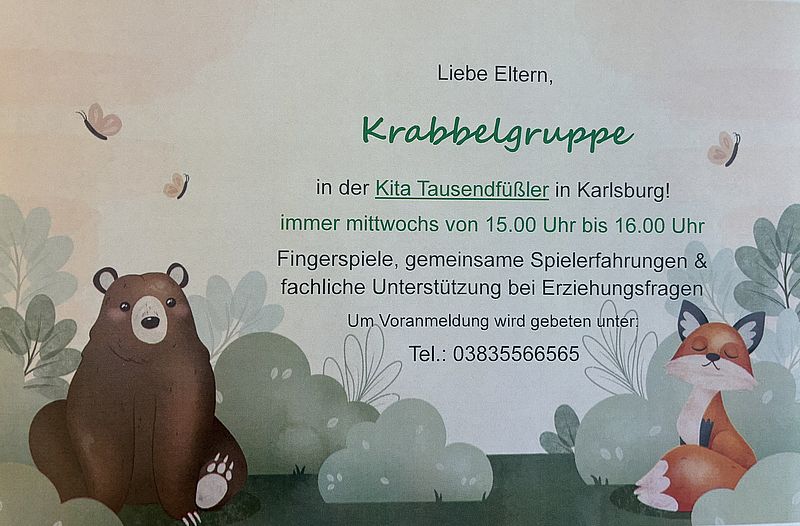 Krabbelgruppe in der Kita Tausendfüßler in Karlsburg