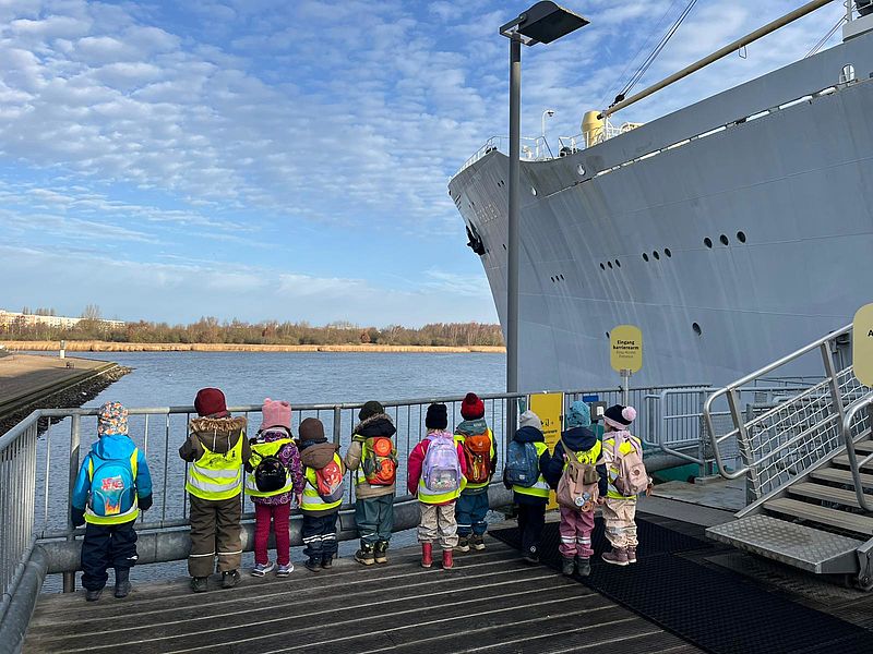 Ein weiterer Ausflug unserer 3 Kindergartengruppen (Gitarrenhüpfer, Klaviermäuse und Kletterwürmer) ging zum Traditionsschiff in den IGA-Park. Hier enterten unsere Großen das Schiff und bekamen erstmal eine Führung vom Heck bis zum Buck. DIe Kinder erkundeten den Maschinenraum und bestaunten die Modelle des alten Hafens. Am interessantesten für unser Projekt war die Ausstellung über Piraten in Rostock. Hier erfuhren die Kinder alte Piratengeschichten und durften in einer Simulation sogar eine Kogge in den Hafen von Rostock einlaufen lassen. Nach einem langen Vormittag an Bord und vielen Eindrücken, verabschiedeten wir uns und spazierten durch den Park zurück zur S-Bahn.
