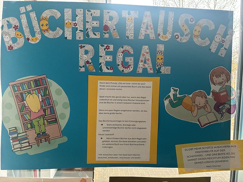 Mit unserem neuen Büchertauschregal haben wir einen offenen Ort geschaffen, an dem Geschichten wandern dürfen. Kinder und Eltern sind eingeladen, Bücher mitzubringen, mitzunehmen und neue Lieblingsgeschichten zu entdecken.