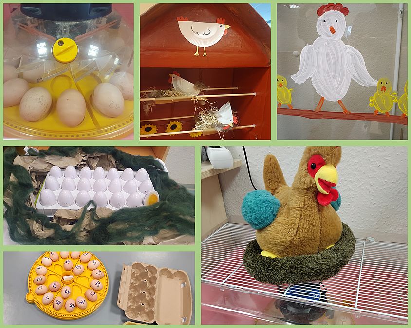 Passend dazu wird im „Abenteuerland“ fleißig gebastelt, gezählt und alles über Hühner gelernt. Wir warten nun gespannt auf den Moment, in dem unsere ersten Küken ihre Schalen durchbrechen.