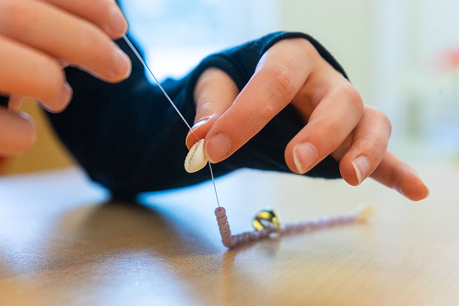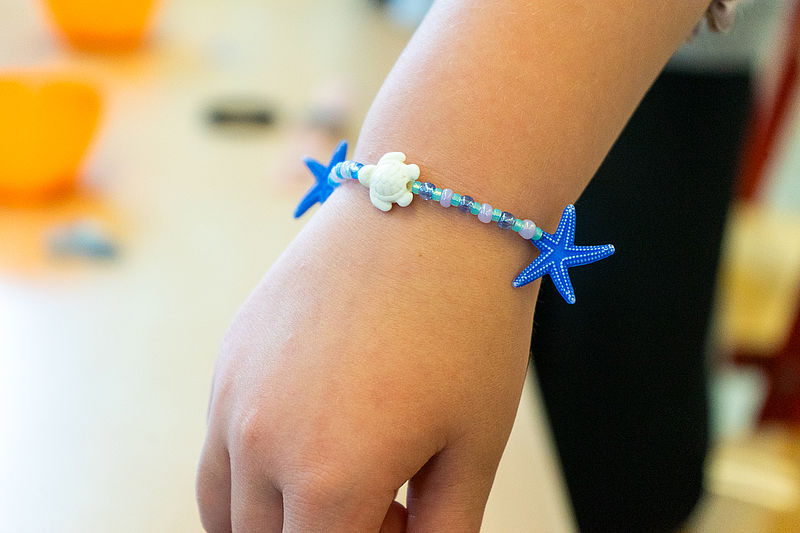 Kreative Korallen: Mit viel Liebe zum Detail bastelten die Kinder farbenfrohe Korallenriffe und knüpften kunstvolle Armbänder, die nun als glitzernde Erinnerungsstücke die Handgelenke schmücken.