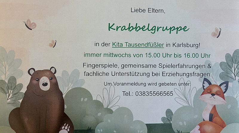 Krabbelgruppe in der Kita Tausendfüßler in Karlsburg