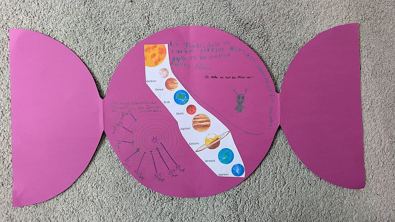 In den Ferien haben wir uns auf eine spannende Reise ins All begeben. Mit unserer selbstgebauten Rakete haben wir viele Planeten besucht und dabei viel entdeckt und gelernt. Passend zu unserem Thema wurde fleißig gebastelt: Es entstanden viele kreative Kunstwerke rund um den Weltraum. Ein besonderes Highlight war das Backen unserer kleinen Planeten in Form von leckeren Cake-Pops. Ein weiterer Höhepunkt war unser Besuch im Planetarium, wo wir den Weltraum noch einmal aus einer ganz besonderen Perspektive erleben konnten. Außerdem wurden die Kinder selbst kreativ: Sie haben eigene Geschichten erfunden, aufgeschrieben und sogar kleine Filme dazu gedreht. Das Thema „Weltraum“ hat uns allen sehr viel Spaß gemacht und war eine spannende und abwechslungsreiche Zeit.