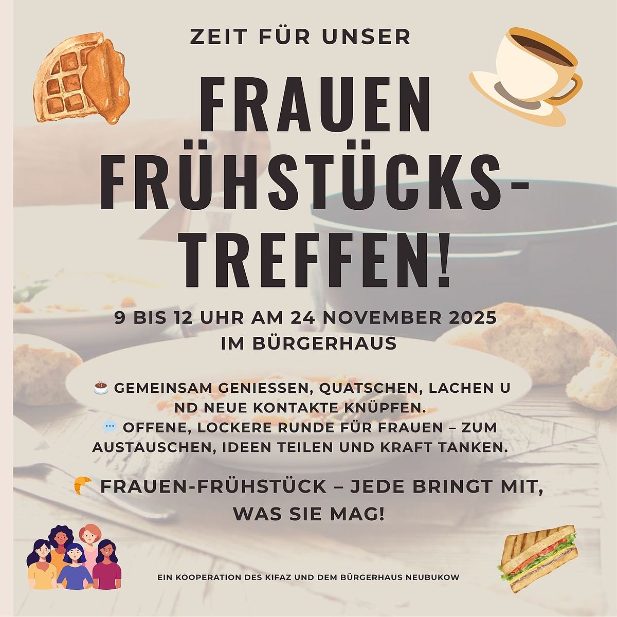 Am 24. November 2025 von 9 bis 12 Uhr laden wir alle Frauen herzlich zu einem gemütlichen Frühstück ins Bürgerhaus Neubukow ein.