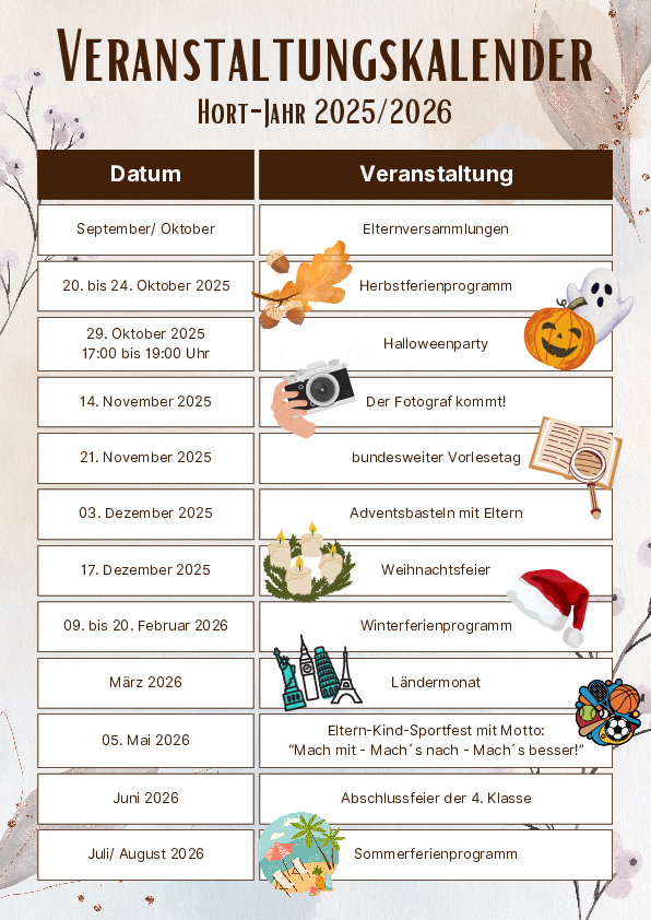 Hier erfahren Sie Aktuelles über Veranstaltungen und Termine im Hort.