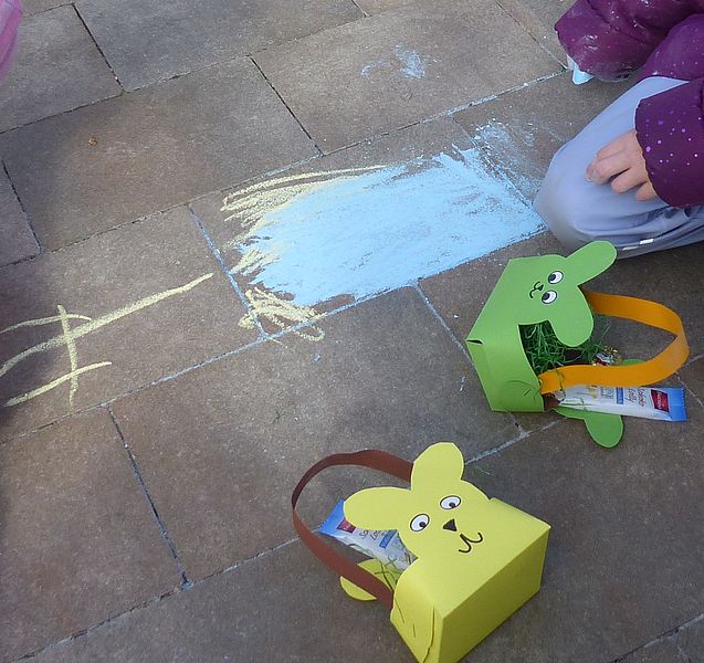 Am 26.3.26 feierten wir unser Osterfest. Der Tag fing mit einem gemütlichen Osterfrühstück an. Ein herzliches Dankeschön an die Eltern, die so einige gesunde Leckereien mitbrachten, die die Kinder sich schmecken ließen. Danach gingen wir zum Johanniterhaus. Dort begrüßten wir die Senioren mit ein paar Frühlingsliedern. Zudem hat der Osterhase viele kleine Körbchen versteckt. Es wurde eifrig gesucht und gefunden. Das war ein aufregender und schöner Tag.
