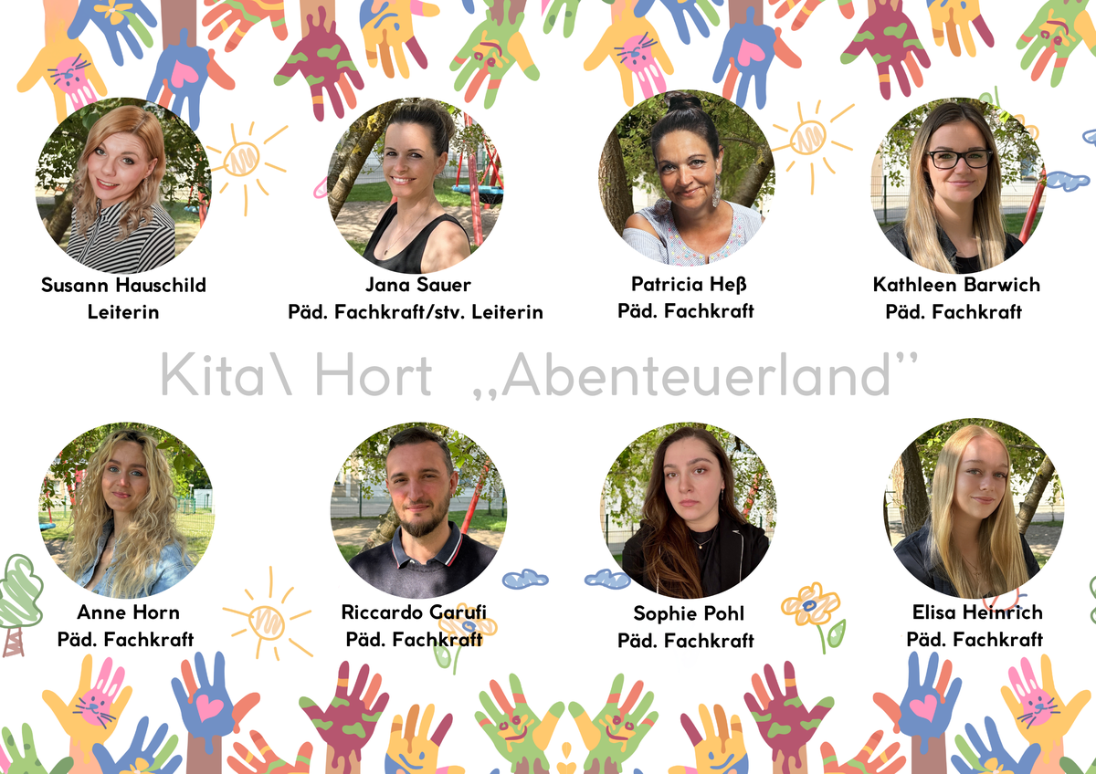 Hort : begleitet von Frau Patricia Heß, Frau Sophie Pohl, Frau Anne Horn, Frau Anna Ivanov, Frau Marika Hannweg, Frau Laura Lange, Frau Kathrin Schmidt, Frau Kathleen Barwich