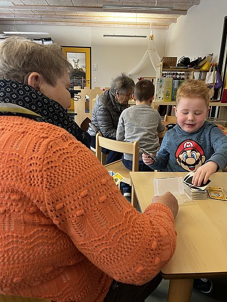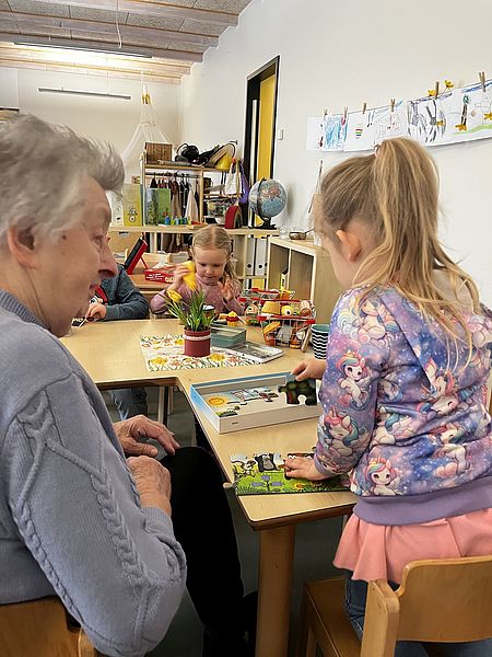 Gestern haben unsere Kinder die Bewohner der Pflegeeinrichtung „Am Stadtwald“ zu einem Spielevormittag eingeladen. In gemütlicher Runde konnten die Bewohner gemeinsam mit den Kindern verschiedene Spiele ausprobieren. Der eine oder andere Bewohner erkannte auch einige Spiele aus der eigenen Kindheit wieder und so waren die Spielregeln schnell erklärt. Der Vormittag ging für die Kinder und Bewohner so schnell vorüber, dass keiner so richtig aufhören wollte. Die Kinder vereinbarten dann sofort einen neuen Besuch und so waren beiden Seiten glücklich.