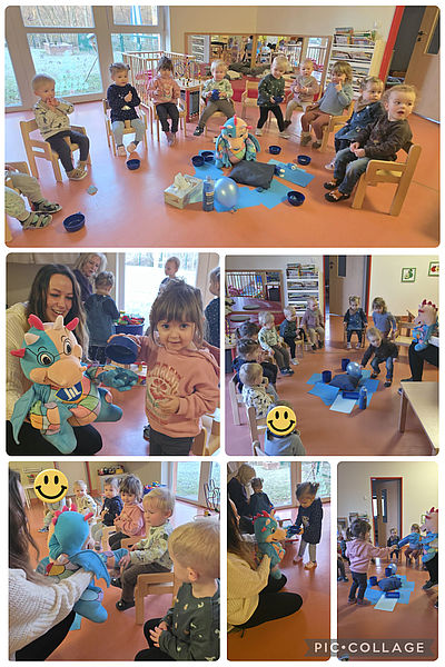 In den nächsten Wochen wird es bei den Krippenkindern der Kita "Waldameisen" ganz farbenfroh. Zuerst schauten wir uns die Farbe Blau genauer an - und dabei hatten wir ganz besondere Unterstützung: Unser neuer Kita-Drache ist bei uns eingezogen. Noch hat er keinen Namen aber genau hier dürfen die Kinder kreativ werden.