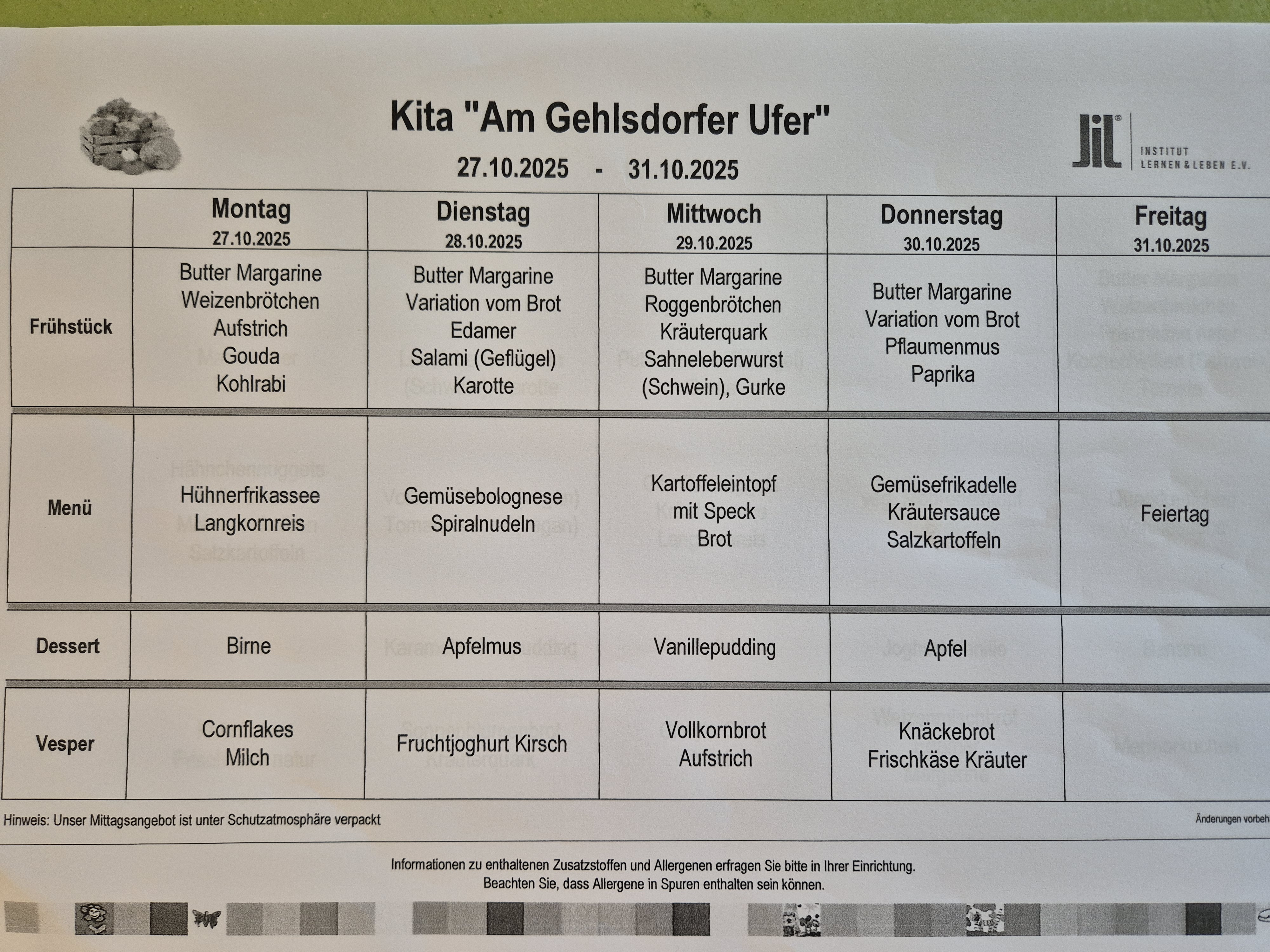 In den Einrichtungen des Institutes Lernen und Leben e.V. gibt es für die Mädchen und Jungen Ganztagsverpflegung. Dies beinhaltet Frühstück, Mittag, Vesper und Abendbrot, welches bei uns im Haus nicht angeboten wird. Die Ganztagsverpflegung ist Konzeptinhalt des Institutes. Seit Herbst 2017 bereitet das Institut Lernen und Leben die Mittagsmahlzeit mit dem Kühlkostsystem "Cook and Chill" selber zu.