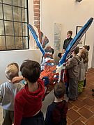 Die Kinder haben die Petrikirche besucht. Die Kirche wurde von innen betrachtet, die Architektur und den Raum erkundet. Ein Orgelspiel haben wir ebenfalls angehört und dabei die Klangfarben wahrgenommen. Mit dem Fahrstuhl sind wir auf den Turm gefahren und haben den Rostock-Ausblick von oben genossen.