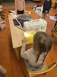 Im Handarbeitskurs „Fadenfreunde“ lernen die Kinder spielerisch den Umgang mit Nadel und Faden sowie mit der Nähmaschine kennen. Sie dürfen sich ausprobieren, erste Techniken erlernen und ihre Kreativität entfalten.