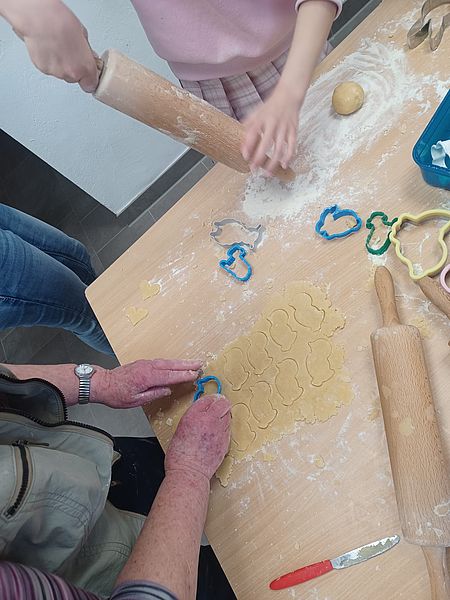 Mit viel Begeisterung, Mehl an den Händen und einem Lächeln im Gesicht entstanden dabei nicht nur leckere kleine Kunstwerke, sondern auch schöne Begegnungen zwischen den Generationen. Die Senioren teilten ihre Erfahrungen und Geschichten, während die Kinder mit Kreativität und Freude beim Ausstechen und Verzieren dabei waren.