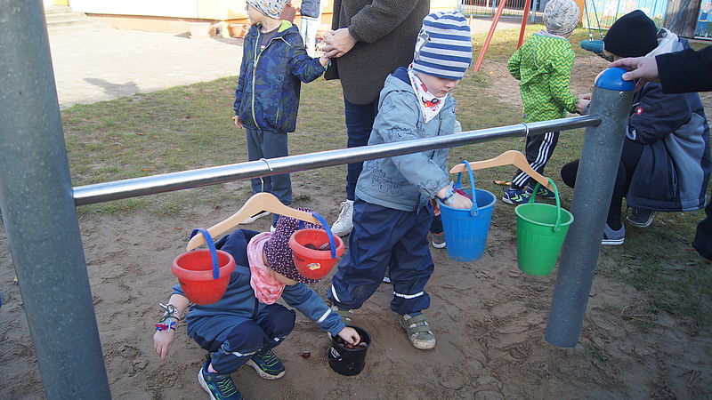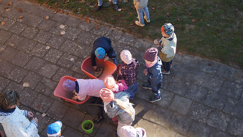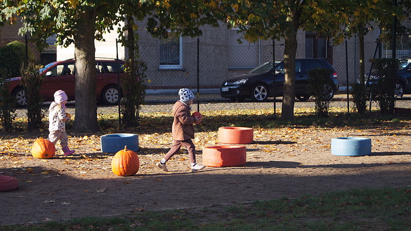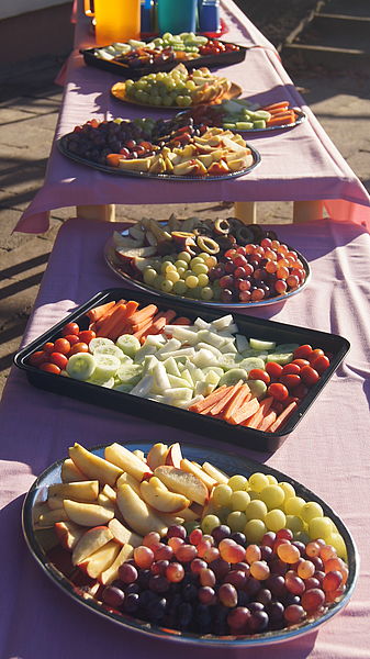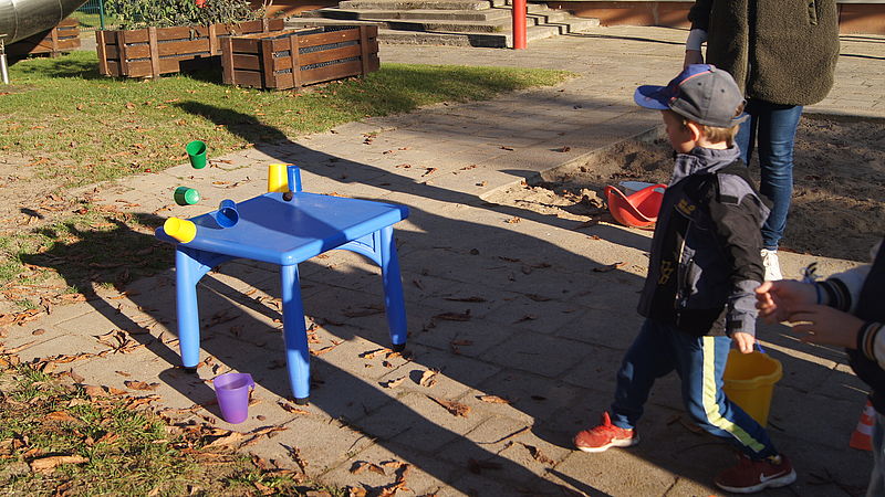 Neben Kastanien wiegen, Kürbis-Slalom, Dosenwerfen mit Kastanien, Schubkarren-Rennen mit Kartoffeln, Kürbis durch die Beine reichen und weitere Spiele rund um den Herbst, gab es für die kleinen Sportler ein reichhaltiges und vitaminreiches Buffet mit saisonalem Obst und Gemüse.