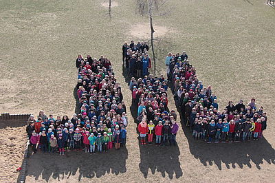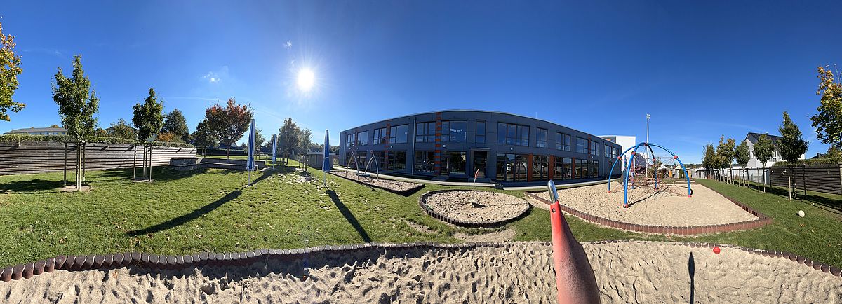 Umgeben ist unsere Einrichtung von Ein- und Mehrfamilienhäusern. In unmittelbarer Nähe befindet sich der Schweizer Wald, welcher sich hervorragend für Spaziergänge und zur Erkundung der Natur eignet. Der großzügig angelegte Schulhof lädt zu vielen sportlichen Aktivitäten, zum Verweilen, Spielen und Erholen ein. Mit der Buslinie 22, die direkt vor der Schule abfährt, sind wir verkehrsgünstig gelegen.