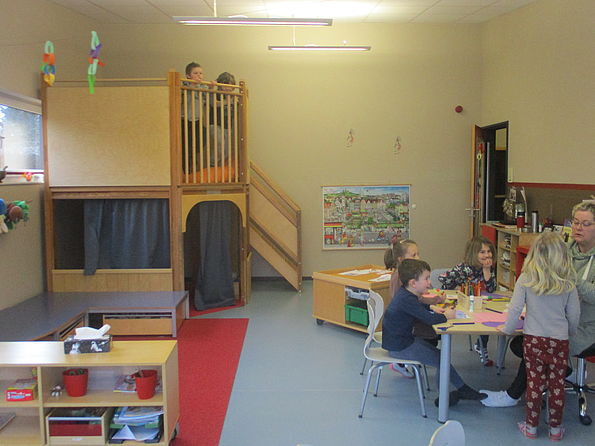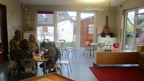 Die bis zu 30 Kindergartenkinder werden von vier staatlich anerkannten Erzieherinnen in zwei Mischgruppen betreut. Um den Kindern das Zusammensein auch außerhalb ihrer Gruppe zu ermöglichen, geben wir ihnen die Möglichkeit sich bedürfnisorientierter zu beschäftigen indem wir die Gruppen teilweise öffnen.