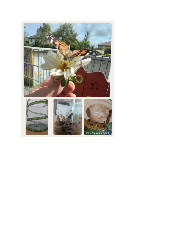 Wir konnten die Verwandlung von Raupen zu Schmetterlingen mitverfolgen. Leuchtende Augen bei den Kindern, als wir die Distelfalter in die Freiheit ließen.