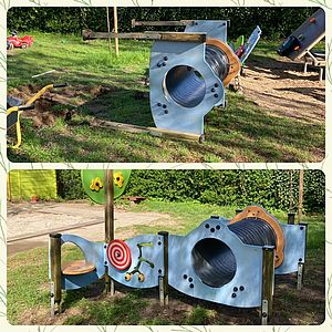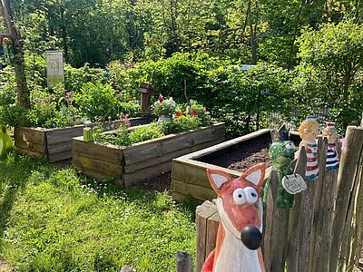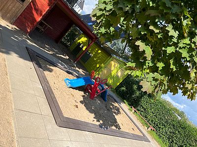 Unser großer Spielplatz, sowie der nahe gelegene Schweizer Wald bieten den Kindern viele Möglichkeiten sich in der Natur frei zu entfalten und diese zu erforschen.